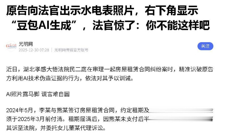 湖北一个法院里,庸俗的租房讼事却因一张水电表像片出了大问题。这张像片乍一看很平时,但真贵的法官发现边际有个奇怪的象征,仔细一查,果然是用合成软件制作出来的。