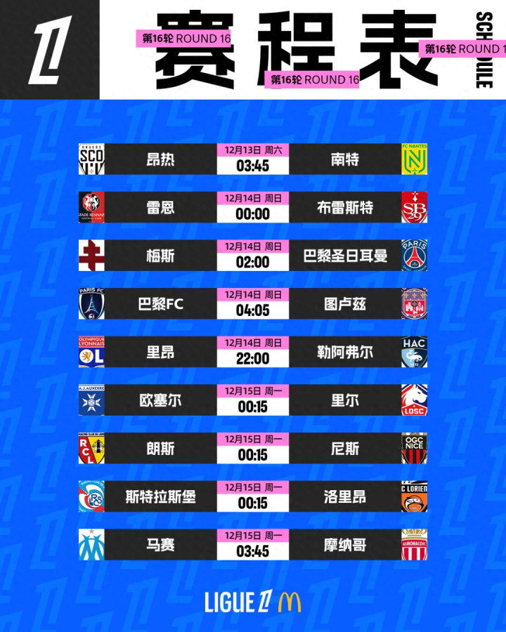 2025/26赛季欧联杯联赛阶段第6轮,里昂2-1力克前进之鹰,里尔0-1客负伯尔尼年青东谈主,尼斯0-1不敌布拉加。2025/26赛季欧协联联赛阶段第5轮,斯特拉斯堡1-0小胜阿伯丁。