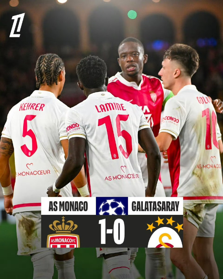 2025/26赛季欧冠联赛阶段第6轮|摩纳哥1-0加拉塔萨雷