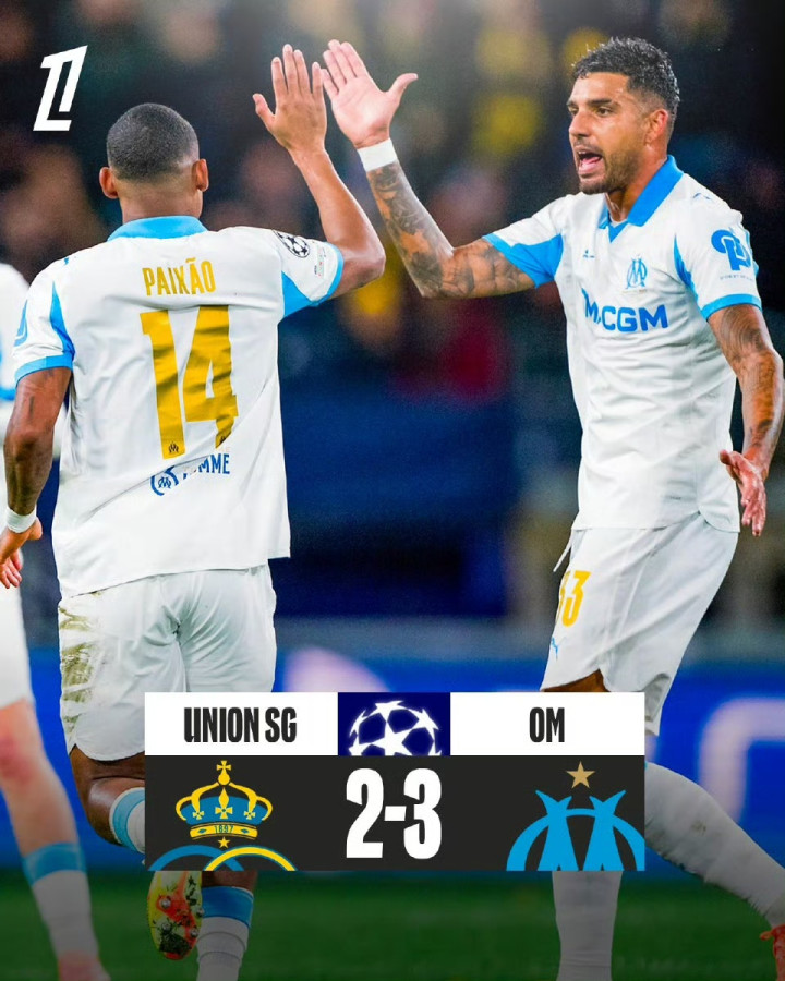 2025/26赛季欧冠联赛阶段第6轮|圣吉罗斯聚合2-3马赛