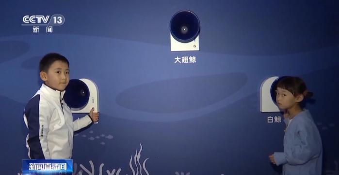 在展厅的一角,大东说念主小孩侧耳倾听,源自深海鲸类的默读,穿越千万年时光,开启了当先陆海的生命对话。